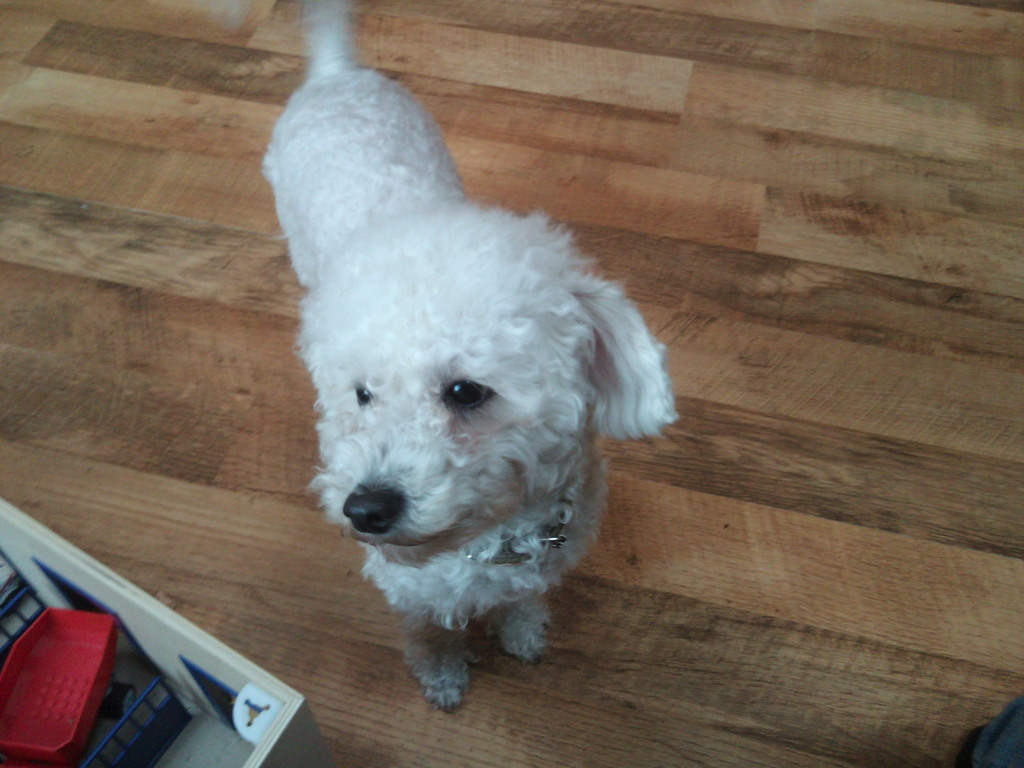 Men det får den nok snart. Hun er veldig rolig og god og klappe på :)